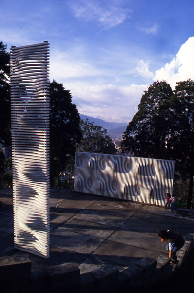 The other event was to the initiative of the great Colombian sculptor Edgar Negret. It was about realizing a park of sculptures on the hill In the middle of Medellin. Some Latino-American’s artist was invited to Medellin with their projects. They only had 15 days to solve all the technical problems of realization, and to install their work.