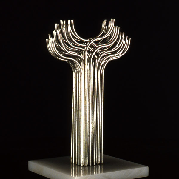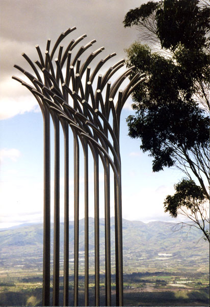 Las esculturas dibujan en el espacio un volumen, pero un volumen atravesado por la mirada. Es como un volumen de puntos en el cual se juntan los múltiples puntos de su construcción interna que delimita un espacio que cambia del exterior y del interior.