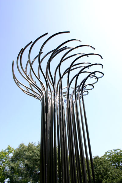 Les œuvres actuelles ne sont pas virtuelles. Elles sont bien réelles, avec la présence contondante de l'acier inox, bien que cette matière, avec sa surface satinée, se prête par sa manière d'accrocher la lumière a de multiples changements.