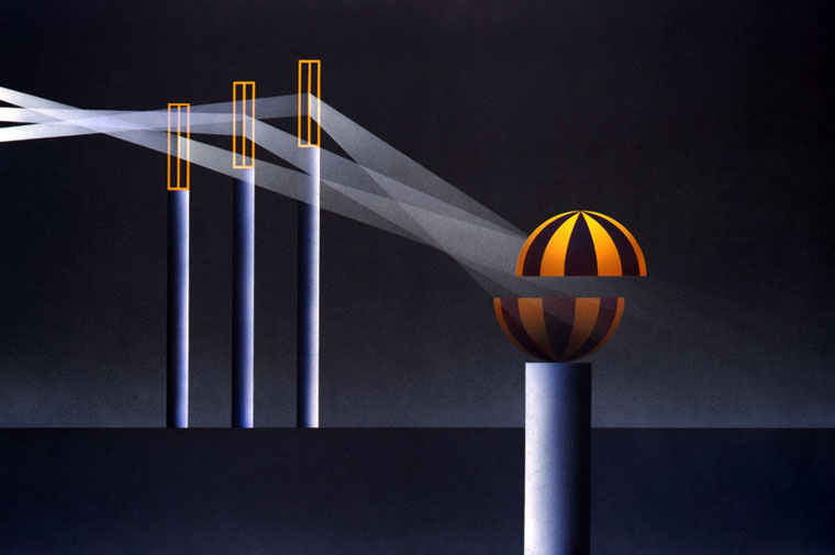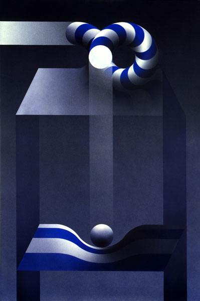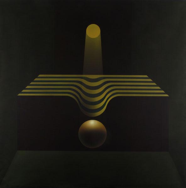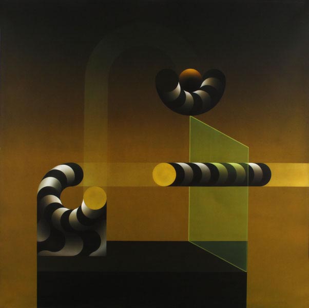 En los trabajos recientes esa constante se mantiene. Ellos son el producto de elementos muy simples puestos en relación a la espera que una riqueza, si riqueza hay, sea el producto de una tensión particular que sobrepasa el carácter de cada elemento constituyendo el núcleo del cuadro. Para que esa evidencia sea percibida, los elementos del cuadro deben ser los menos posibles y lo más anónimos que se pueda, para que el interés se sitúe en un plano intermedio entre el espectador y el cuadro, de manera que haya un despegue de la superficie banal hecha de formas y colores y que una presencia inmaterial flote ahí a algunos centímetros del cuadro, o tal vez detrás de él, en un mundo a penetrar.
