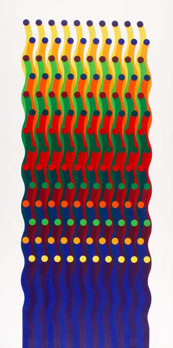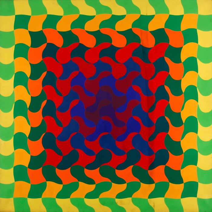 En todas estas experiencias lo que me impresionaba era la cantidad de cambios posibles contenido en cada programación. Me daba gusto imaginar todas esas variaciones sucediéndose en el tiempo y mis cálculos de probabilidades me llevaban a considerar otro fenómeno: la duración indeterminada. Cada tempera o cuadro producido por tal o cual combinación era para mí un momento particular de todo ese movimiento de colores en cambio continuo que rodaba en mi cabeza. Luego ya al fin de 1959 me puse a imaginar mecanismos para poner en evidencia ese potencial de variaciones, el movimiento real aparece en mis experiencias, la multiplicación de imágenes, la transparencia, el color en el espacio, la luz. Todas esas investigaciones con el color realizadas en 1959 las he retomado en 1969, las he visto, ordenadas, agrandadas, dándoles una forma más clara y a partir de ellas otros temas han surgido y se han desarrollado como por ejemplo los temas: ondas, volúmenes virtuales, la larga marcha, etc.