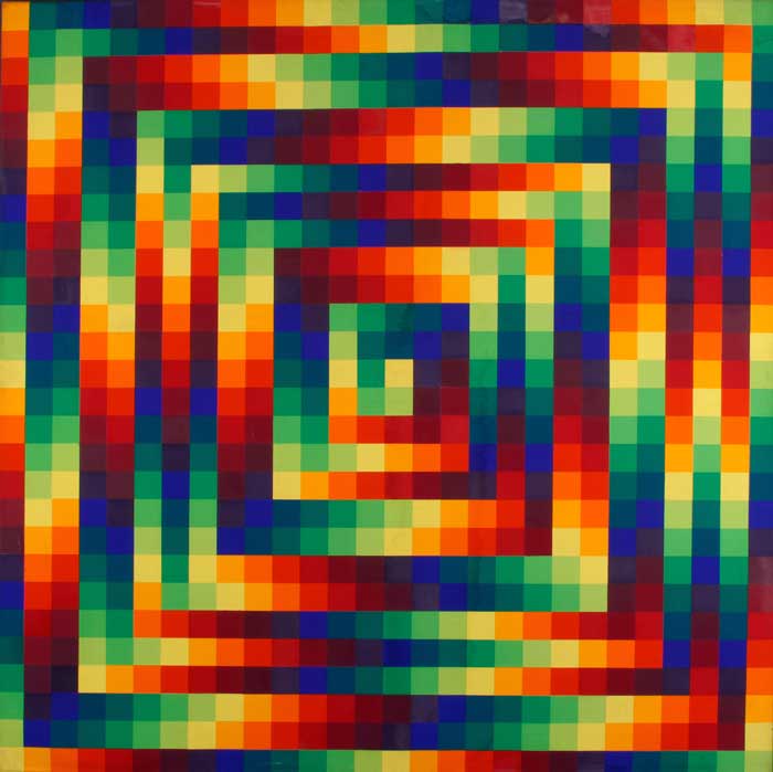 I started some colors researches in 1959 avoiding colorist; I applied the same technique to the color and the form. When I was working with colors it wasn’t to achieve a "blue hot" painting etc...I started to use not one color but all of them. I wanted them to be pure, not spoiled by black and white. I forbid myself to us any colors I didn’t choose from the start. The limited 14 colors seemed to resume all the possible variations of the chromatic mixtures.