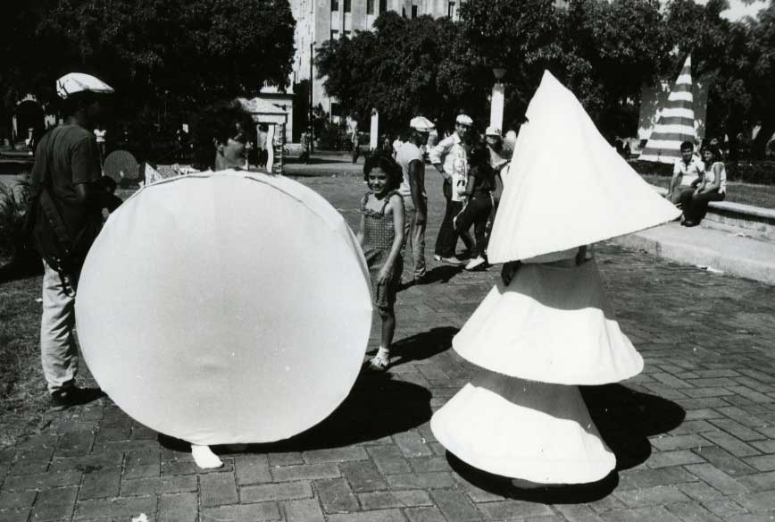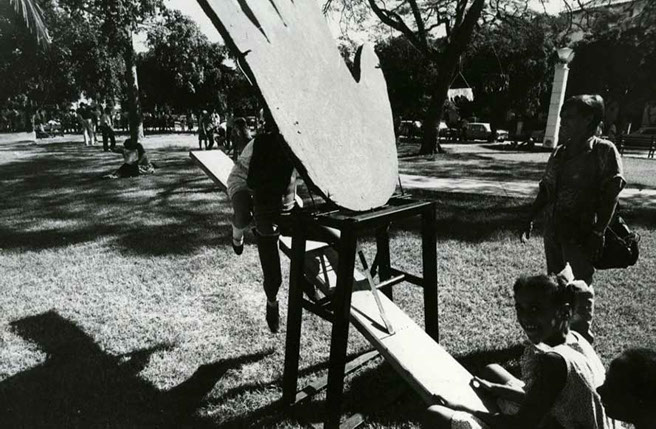 L'invitation qui m'a été faite de réaliser un atelier à La Havane est venue de ce que j'avais raconté aux responsables culturels cubains en 1985 a propos de ce que le cercle des Beaux-arts de Madrid organisait. La- bas, tous les mois, un artiste connu est invité à diriger un atelier de jeunes artistes. J'y ai d'ailleurs été moi-même invité. Le travail de mon atelier s'est terminé par une expérience collective dans la rue, dans le parc du Retiro de Madrid. Quelques années auparavant, j'avais fait quelque chose de similaire avec un groupe d'étudiants de l'école d'Art d'Aix-en-Provence, dans le sud de la France, et déjà en 1966 avec le GRAV (Groupe de recherche d'art visuel), nous avions réalisé une expérience a Paris, intitulée « Un jour dans la rue).