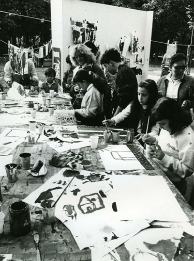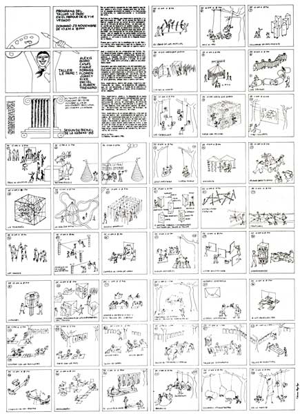 On peut répéter l'expérience du parc mais sa projection ne passe pas obligatoirement par la répétition. II ne s'agit pas d'avoir en permanence un groupe qui fait la même chose, ni d'attribuer un caractère plastique aux choses populaires : carnavals, fêtes, parcs pour enfants, etc., bien qu'on puisse en considérer la possibilité.