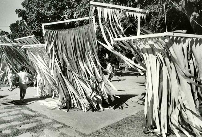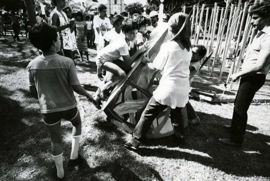 Je considère que cette expérience a été un succès puis ¬qu'elle a rempli sa mission. Le niveau de participation spontanée du public était extraordinaire. Certains débordements peuvent être attribués à la liberté totale d'utiliser les éléments exposés et à l'absence totale d'encadrement. Ceci peut s'expliquer par un manque d'habitude de ce genre d'événement, par la contagion de la participation exacerbée ou par une appropriation démesurée de tout ce qui se trouvait la, par une ignorance des limites, par un manque de références, etc. II est certain que s'il y avait eu un minimum d'encadrement pour éviter les excès, on n'aurait pas eu à parler de violence destructrice. II faut bien savoir que la plupart des réalisations étaient précaires. Dans le programme, sur certaines il était inscrit : «A partir de 10 h du matin et pour le temps que ca durera ». De toute façon, même quand certains éléments se sont cassés, les jeunes et les enfants inventaient d'autres utilisations possibles avec les morceaux restants.
