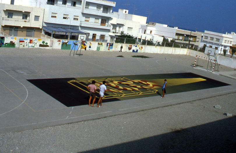 In 1983, I create a monumental work. One in Fuenginola in Spain organized from a group of painter from Malaga, with the support of the community. The idea was to transform the town into a museum.That’s how contemporary artists covered the buildings wall with their work. I personally realized a 150 sqm² wall painting.