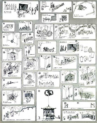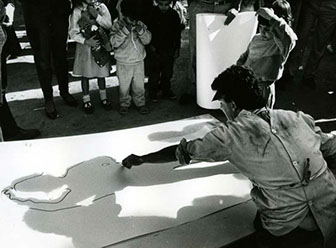 C'est une direction, l'expression d'un souhait plutôt qu'une conception. C'est comme voir au fur et à mesure, dans les sociétés dans lesquelles nous vivons, comment on maintient en général les gens dans une situation de passivité, de dépendance, de non-intervention, par l'intermédiaire d'institutions établies, qui ne les prédispose pas à une relation directe dans presque tous ses aspects. C'est ainsi que, en ce qui concerne les arts plastiques, la capacité d'imagination et de création des gens s'endort. Peut-titre que, de ce point de vue que l'on peut qualifier d'utopique ou d'irréalisable, la volonté existe d'aspirer a ce que les gens se réveillent, participent, observent, critiquent, transforment, libèrent leur capacité de création. Les problèmes que nous avions dans les années soixante restent, pour un jeune peintre, irrésolus. Comment va-t-il diffuser son œuvre ? Comment subsister pour continuer a travailler ? Comment va-t-il se mettre en valeur ? Quel écho ou quelle incidence sociale son œuvre va-t-elle avoir ? Qui en est le destinataire en fin de compte ? Quel est le vrai sens du concept de liberté d'expression ? De quelle manière la création artistique contemporaine est-elle conditionnée par les lois du marché ? Qu'y a-t-il derrière les phénomènes de modes successives ? Comment expliquer la cruauté du système qui brule ceux qu'il avait adorés et rendus célèbres ? Quels sont les principes d'ordre esthétique sur lesquels il faut s'appuyer pour accroitre sa capacité de création et conquérir le public? Ces phénomènes qui concernent la manière de faire l'art actuel et de le faire circuler socialement restent identiques. Ce type d'expérience ne concerne pas seulement les 21 artistes, que je ne connaissais d'ailleurs pas jusqu'a présent, qui y ont travaillé avec moi. Et ces problèmes les affectent, si ce n'est quotidiennement, en tout cas de manière vitale. Certains les résolvent à tâtons, mais ils ne sont pas les seuls inquiets. Quand des activités de ce type ont lieu, on est confrontés à la soif et à la demande du public, à sa volonté de participer, a son désir de faire des choses. La nuit tombait que le public se pressait encore pour nous réclamer peintures et papier. Certains parlaient de contagion...
