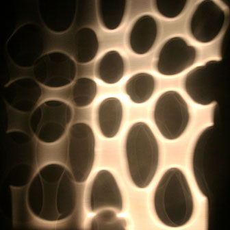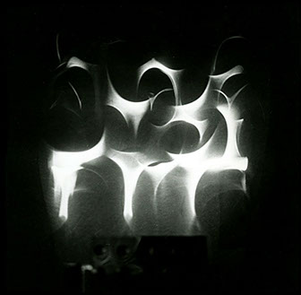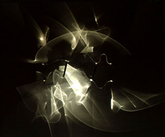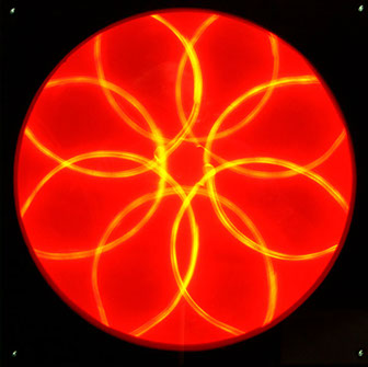 Avec la première formule, je réalisai quelques expériences utilisant plusieurs sources de lumières qui tracent un dessin sur la plaque circulaire quand celle-ci tourne à grande vitesse.