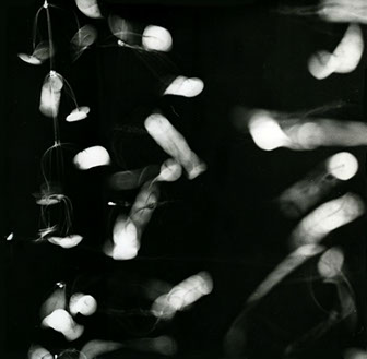 In 1962, I did other experiments using a ray of artificial light; some of them consist to project a ray of light on a cylinder which reflected the ray and distorted it on a wooden white circle which was the bottom of the cylinder. The ray was then intercepted by mobile elements which fractioned it by different manners. The visual results on the white circle were a constant and imperceptible game of shadows and lights, which were previously set. The same principal of shaved light was used to other experiments.