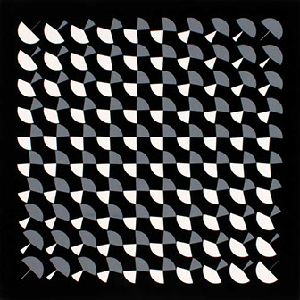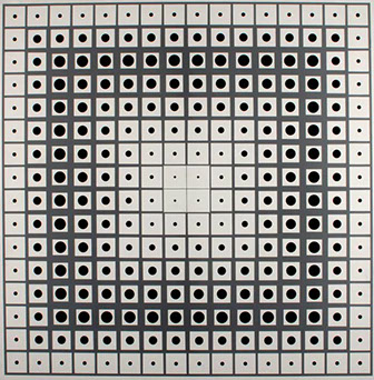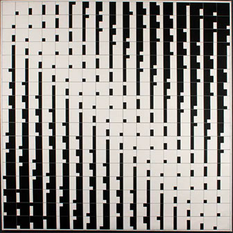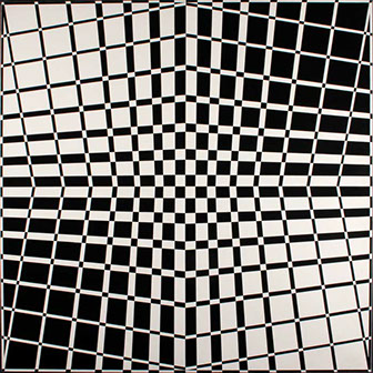 Un tableau de Vasarely nous aurait d'autant plus satisfaits qu'il aurait respecté la trame et laissé la surface se couvrir de carres uniformes sans introduire de modifications. Nous discutions avec Vasarely notre méthode de travail à base de systèmes. II la trouvait légitime mais revendiquait pour sa part le droit d'intervenir (même sur des trames régulières) et de produire des changements qui manifestent la personnalité créatrice de l'artiste. Une argumentation semblable était développée devant nous par Max Bill, un autre artiste de la génération de Vasarely.