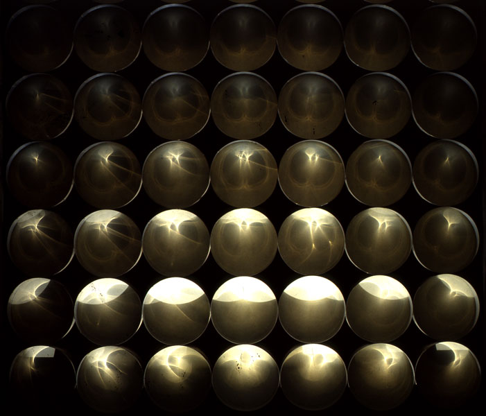 Un élément réalisé en 1964 est à l'origine d'une autre série d'expériences. Il s'agit d'un disque en aluminium poli de 60 centimètres de diamètre qui tourne à grande vitesse sur un axe légèrement dévie, sur lequel est projeté un rayon de lumière. Ce qui produit deux phénomènes. D'une part, les images sont renvoyées par la plaque " miroir ", cela dans un mouvement saccadé constant, incluant la lampe du projecteur qui décrit un cercle lumineux dans le reflet. D'autre part, la lumière est projetée par la plaque, éclairant rapidement et alternativement les objets, ce qui produit une vibration continue due au déplacement rapide de la lumière et de l'ombre.