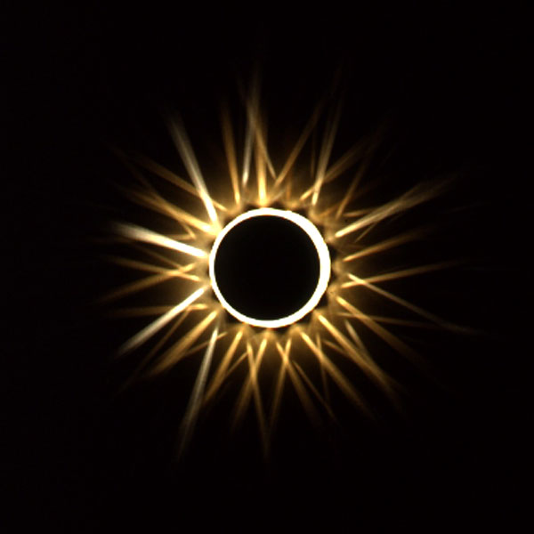 L'ensemble est placé au milieu de la chambre. Les éléments suspendus reçoivent quatre rayons de lumière et dispersent leurs reflets horizontalement, verticalement et obliquement sur les murs, sur le plafond et sur le sol.