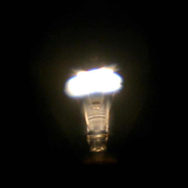 Following the same principal, I achieved with the help of magnifying glass, to project the lamp itself in vibration to the screen. Other experiments were realized ;among them: the projection of a ray of light through many little squares, set on a spring with an engine, set in vibration, the reflection of the light on each little squares; then projected on a screen, it produces circles which became deformed as the vibration slows down, until becoming a luminous point of light.