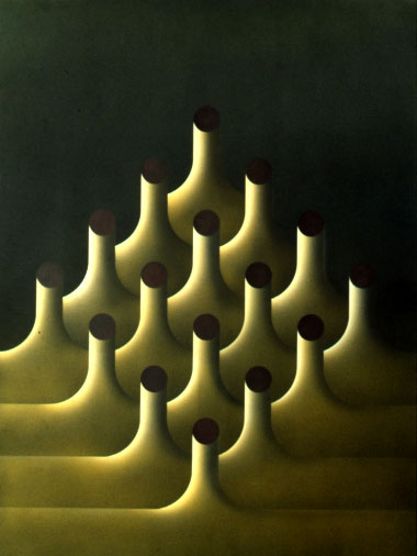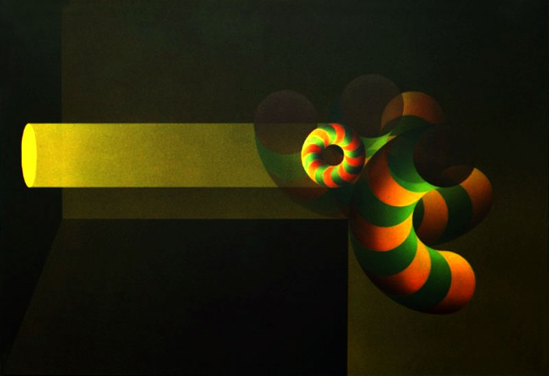 El campo del experimentar no se reduce únicamente a forma, colores y matemática. Tal vez por ello mi experimentar actual, siendo la continuación de todo lo hecho, se sitúa en un campo más sutil, más impreciso, más fluctuante, que requiere un manejo de elementos, que van más allá de la simple relación formal. Esos elementos no son fáciles a circunscribir, tienen su propia vida, se hacen evidentes en un cuadro y en otro el esfuerzo por aprehenderlos, por controlarlos se revela infructuoso. De ahí que ello provoque en mi una obstinación a continuar el trabajo en esa dirección, como cuando uno entra en una región que no conoce y percibe de ella señales alentadoras y un misterio a adivinar, cuando no es a todo imaginar, a todo inventar. Ese proceso, bien que uno quiera ir rápido, acelerando etapas, es lento y a veces hay que hacer recorridos con torneantes y estar al acecho, adicionando pequeñas observaciones, pequeños hallazgos para ir configurando algo que no se saber bien qué va a ser.