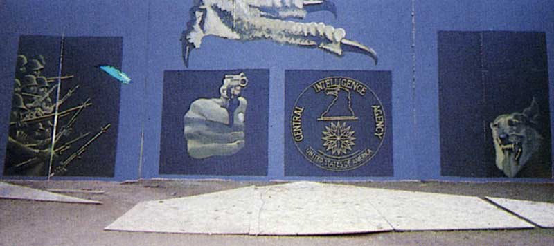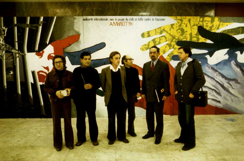 - Collective realizations of the international brigade of antifascist’s painters gathered in Venice and composed of: Balmes, Basaglia, Boriani, Eulisse, Cueco, Gamara, Le Parc, Marcos, Netto, Nunes, Perusini, Ernest Pignon, VanMeel. The brigade has realized 3 collective works; the first 12 meters high in Venice’s harbour, to support the sea freight boycott to Pinochet’s Chili by the harbor workers, and a second one in Athens for the international solidarity congress with Chili and a third one of 20 meters realized in Paris of Salvatore Allende’s resistance museum.