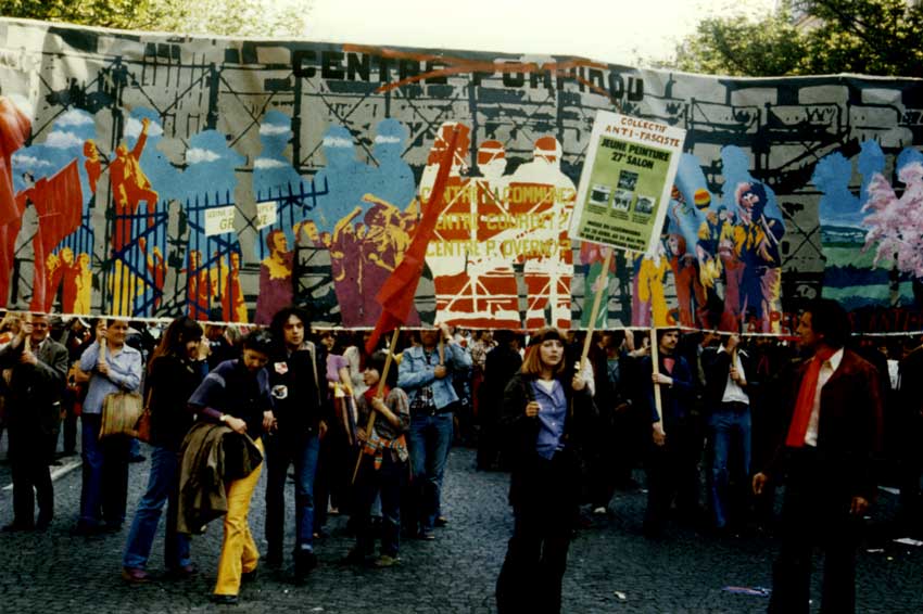 In May 1976, the collective has confectioned a huge poster of 10 meters wide on the theme “Art Centre Pompidou” and has carried it with the workers in the demonstration of May 1st in Paris. The collective is composed of: Bezard, Bouvier, Brandon, Colin, Counil, Deriver, Dupre, Fromanger, Lazar, Lecloarec, Le Parc, Matieu, Netto, Perrot, Picard, Riberzani, Vigliente, Vignes, Yvel and Dego.