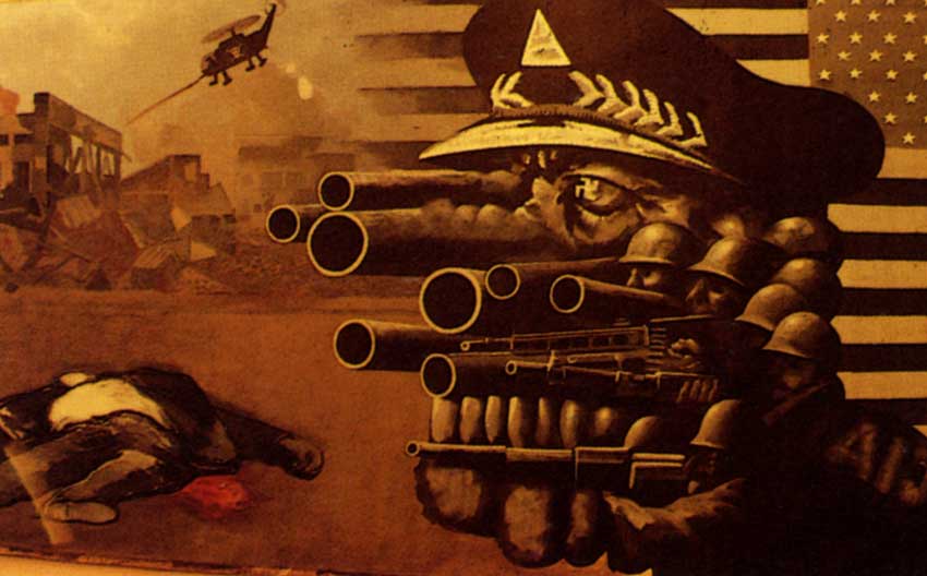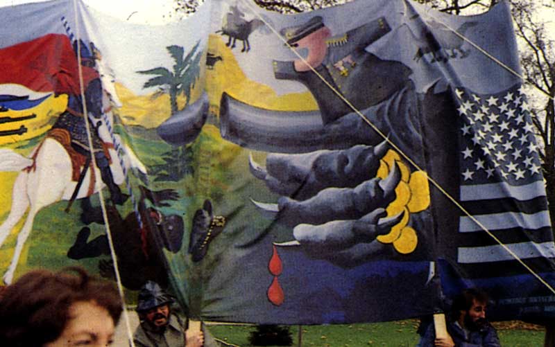 To use professional capacities either to support local protests (popular workshop of posters makers, “painter’s red rescue”) or popular protests for Latin America (protest “non official Latin America” etc...) using graphic works or organizing spaces during exhibition to denounce oppression, repression and torture in Latin America. I also in some other cases, use the recognition and prestige of my work.